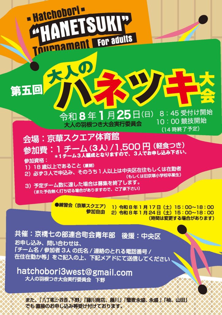 2020年に八丁堀の有志メンバーが立ち上げた羽根つき大会が、ついに第5回を迎えます!
