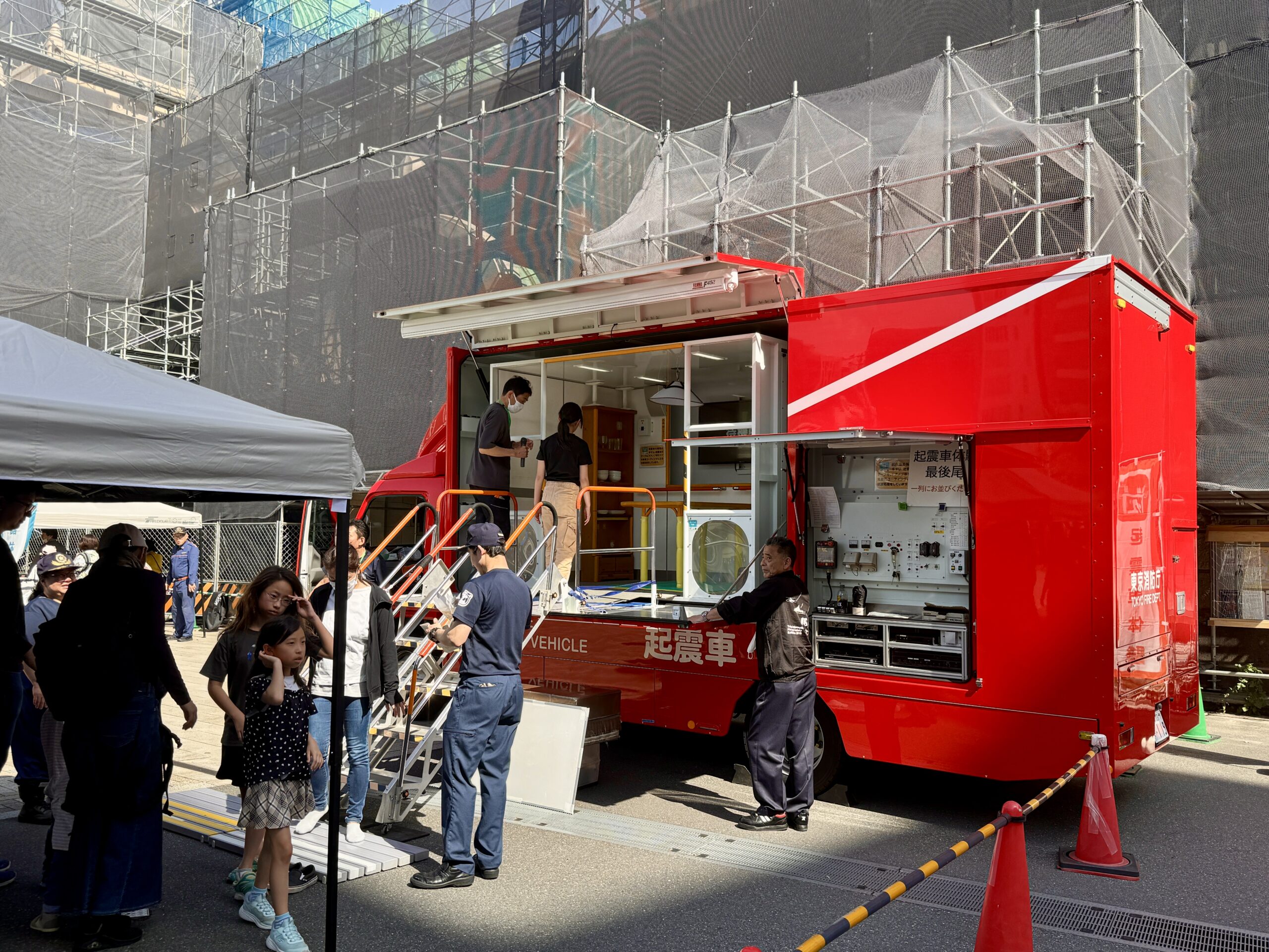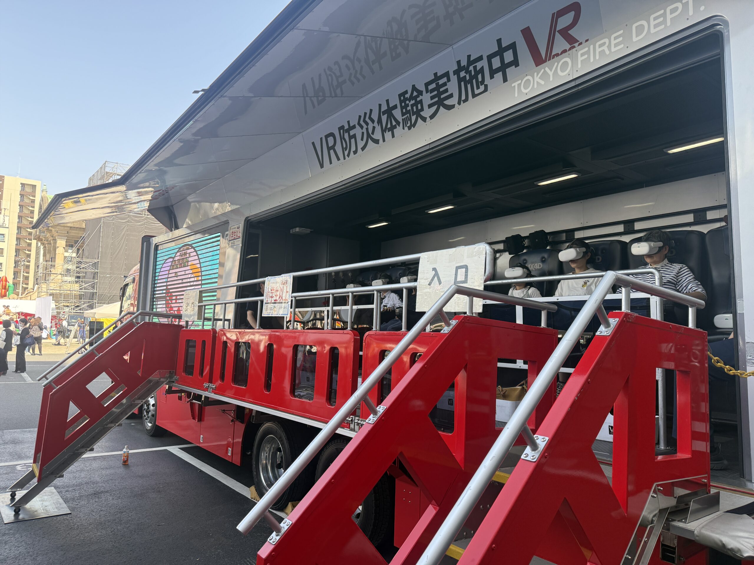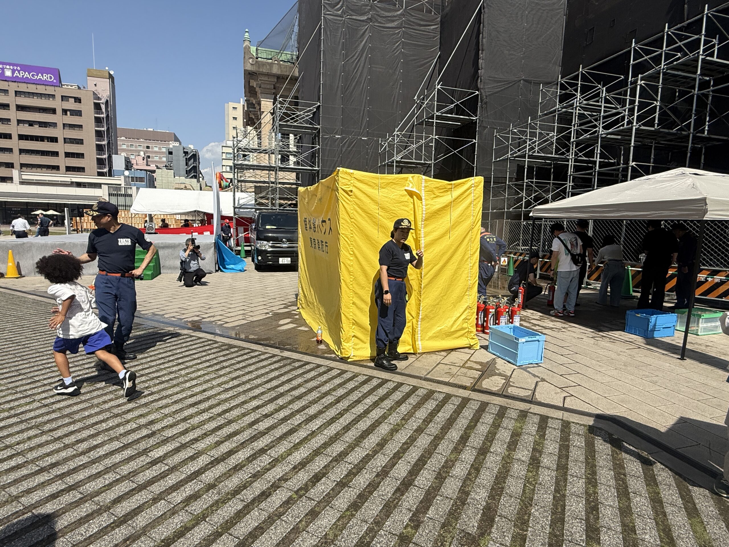 会場には消防体験コーナーも設けられ、京橋消防署員および京橋消防団員が、来場者の案内や防災PR活動を行いました。地震や火災を体感できる「VR防災体験車」や起震車による地震体験、煙体験ハウス、訓練用消火器を使用した初期消火訓練など、多彩な体験型展示を実施し、子どもから大人まで多くの方に参加していただきました。
