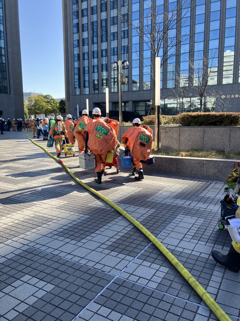 今回は化学災害・生物(バイオハザード)災害を想定した訓練で、多くの職種の方々と連携しながら、現場での対応を学びました。