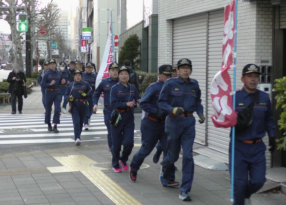 京橋消防署をスタート・ゴールとし、管内にある七つの分団本部を巡るルートで、約90分間にわたり街を駆け抜けながら、街ゆく皆さまに「火の用心」を呼びかけました。