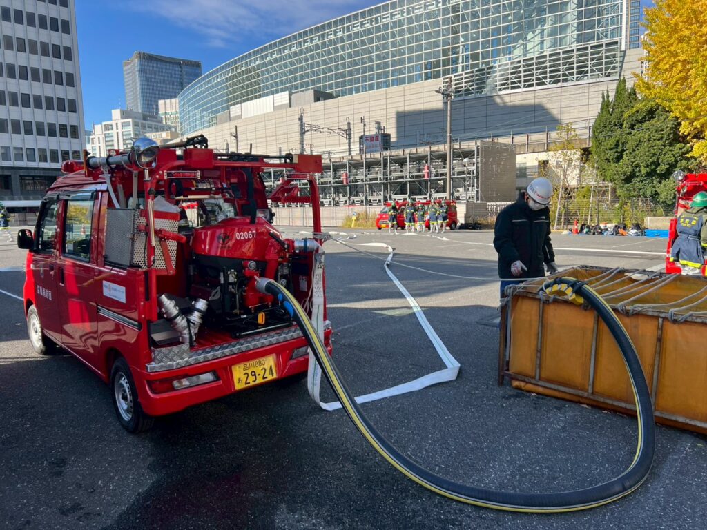 京橋消防団はこの訓練に出場し、想定付与のもと災害対応訓練に従事しました。
